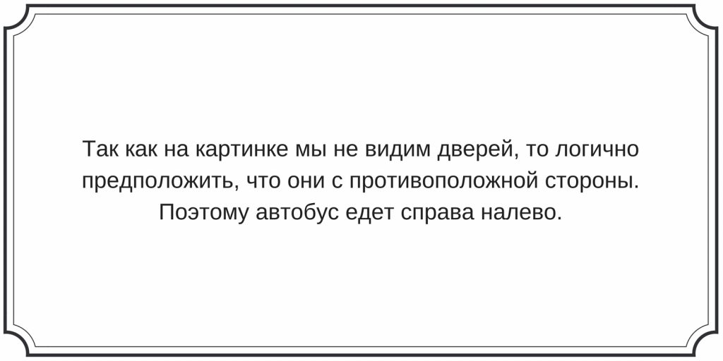 Стоит учитывать, какое движение, правостороннее или левостороннее, принято в вашей стране. Допустим, при правостороннем движении автобус поедет…
